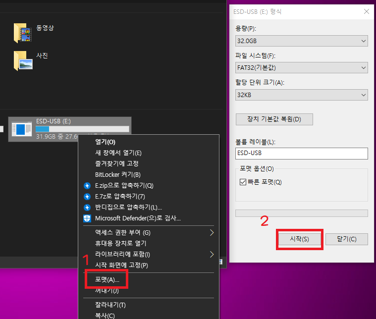 USB 깨끗하게 포맷부터 진행 하겠습니다.